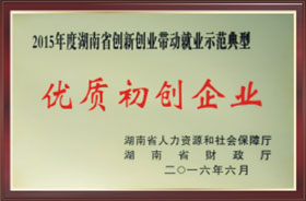 榮獲2015年度湖南省創新創業帶動就業示范典型優質初創企業
