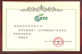 榮獲第十二屆中國國際農產品交易會優秀組織獎
