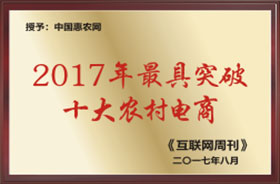 榮獲2017年最具突破的10家農村電商稱號名列榜首