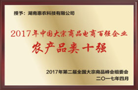 榮獲2017年中國大宗商品電商百強企業農產品類十強